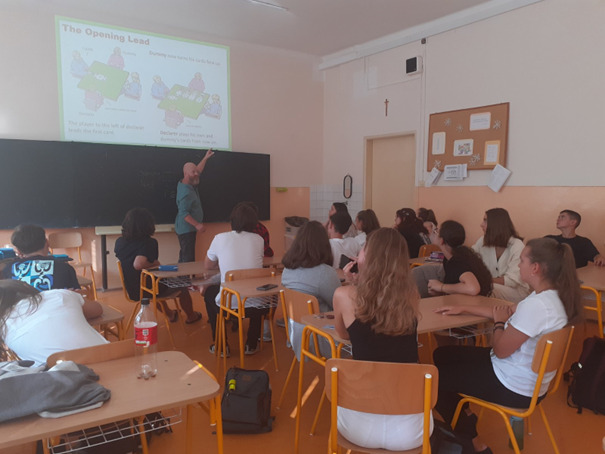 Po ročnej intenzívnej spolupráci s našim nórskym partnerom sa vzájomná kooperácia posunula na ďalšiu úroveň. Počas návštevy Finna Brandsnesa na Slovensku v termíne od 18. do 22. septembra 2023 sa v priestoroch nášho slovenského partnera – Kongregácie sestier dominikánok na Slovensku, ktoré vedú Gymnázium Tomáša Akvinského v Košiciach, uskutočnilo ďalšie stretnutie, ktorého predmetom bola metodická výučba nových školiteľov hry bridž.